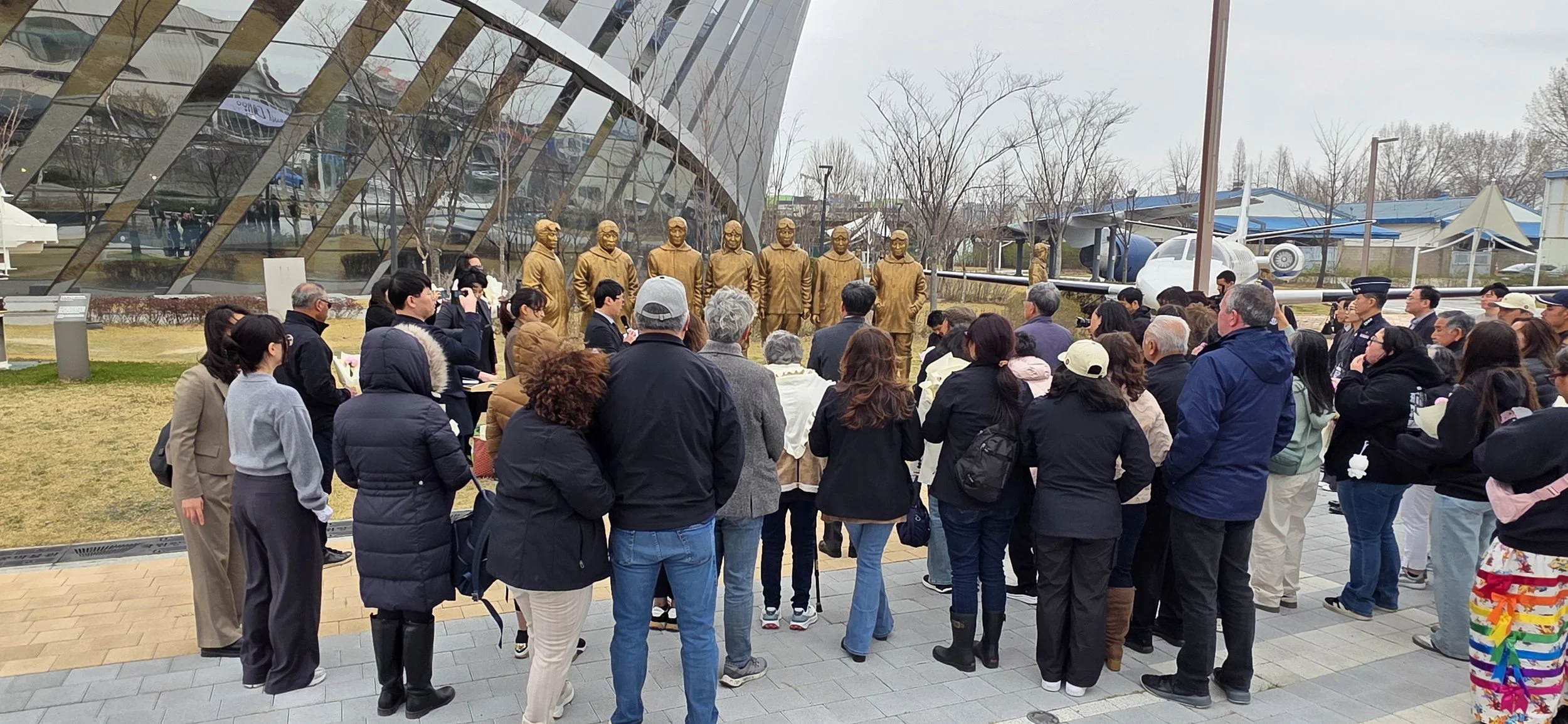 We held a flower-laying ceremony in front of the aviation school statue located in the outdoor exhibition area of the National Aviation Museum of Korea.